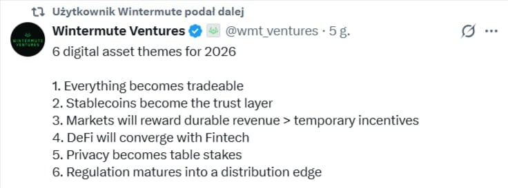 Z raportu wynika również, że największym zagrożeniem dla stabilności rynku w 2026 roku nie są już regulacje, lecz narastające braki w płynności. Analitycy z firmy Wintermute podkreślają, że kapitał przestał rozlewać się szeroko po rynku i obecnie koncentruje się niemal wyłącznie w Bitcoin oraz Ethereum. Taka sytuacja sprawia, że debiuty giełdowe mniejszych podmiotów stają się znacznie trudniejsze do zrealizowania niż jeszcze dwanaście miesięcy temu.