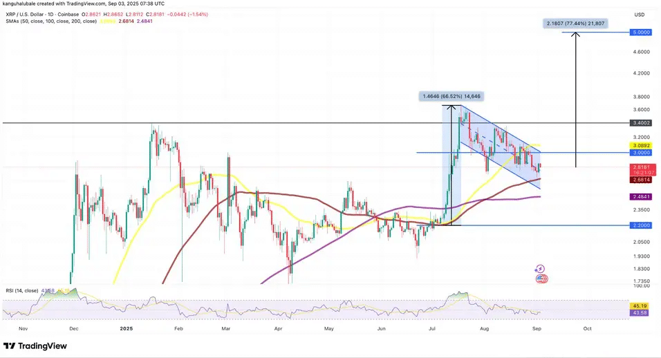Korzystny wzór na wykresie XRP: cena może wzrosnąć o 77%