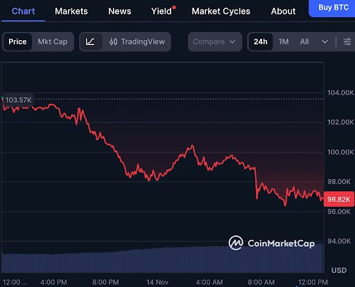Niedawny spadek ceny bitcoina poniżej 100 000 dolarów wywołał poruszenie na rynku kryptowalut. W piątek bitcoin (BTC) spadł o 4,2% do 97 795,5 dolara, najniższego poziomu od maja. Ten gwałtowny spadek przypisuje się rosnącym wątpliwościom co do obniżki stóp procentowych przez Rezerwę Federalną w grudniu, a także spowolnieniu wzrostu i instytucjonalnym popycie na kryptowaluty.