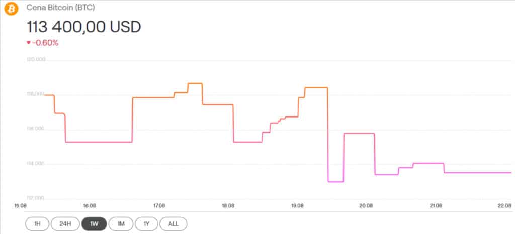 Kryptowaluty w defensywie, Bitcoin po 113 400 USD. Co przyniesie Jackson Hole?
