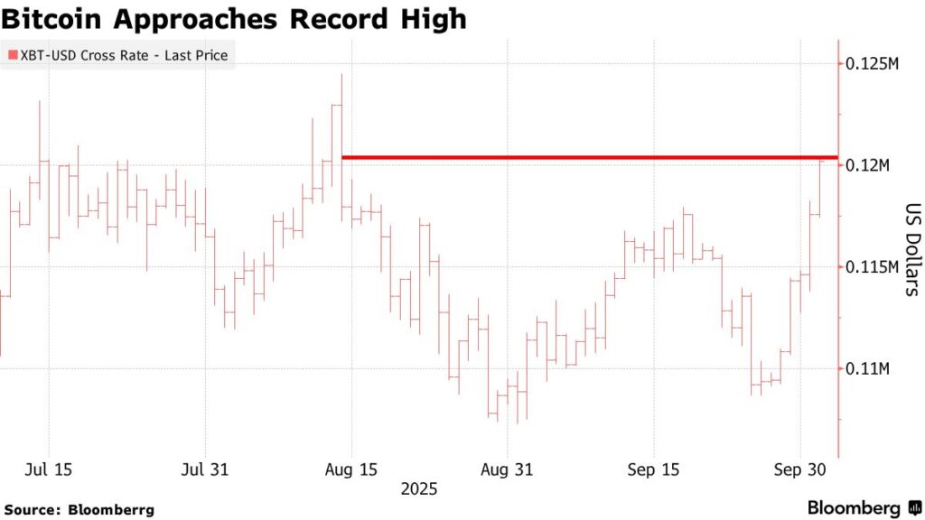 Na rynkach finansowych znów czuć zapach ryzyka, ale tym razem nie w klasycznym sensie „risk-on”. Bitcoin, często niedoceniany jako barometr globalnej niepewności, znów gra pierwsze skrzypce. W piątek jego kurs przebił poziom 123 tys. dolarów. To najwyżej od sierpnia. Popyt napędzany jest częściowo przez polityczny kryzys w Waszyngtonie, które ciąży dolarowi i rentownościom obligacji… Oraz regularną hossę na rynkach akcji.
