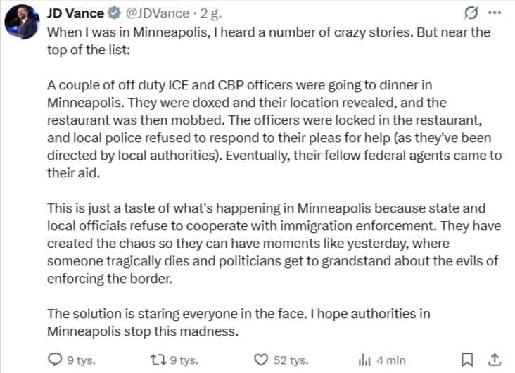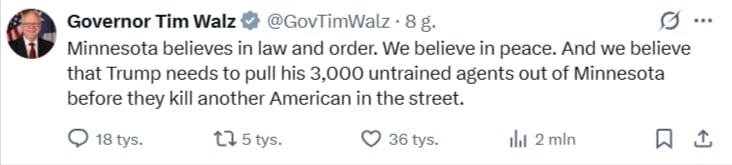 Podczas gdy Waszyngton pogrąża się w sporach o finansowanie murów i agencji celnych, mieszkańcy Minneapolis obawiają się, że ich miasto stało się poligonem doświadczalnym dla nowej formy autorytaryzmu. Gubernator Tim Walz wezwał prezydenta do natychmiastowego wycofania jednostek federalnych z ulic, argumentując, że ich obecność zamiast zaprowadzać porządek, jedynie potęguje agresję.