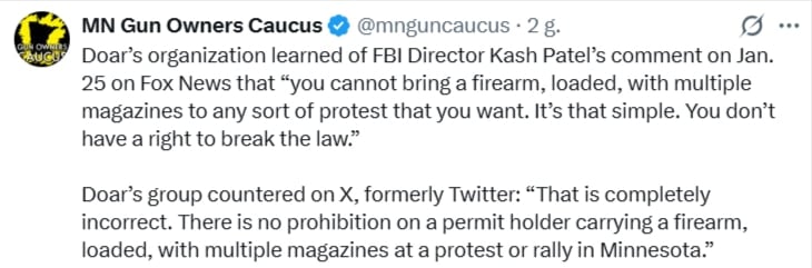 Kontrowersje wokół działań w Minneapolis dzielą nawet tradycyjny elektorat Partii Republikańskiej, który zazwyczaj popiera twardą politykę imigracyjną. Zastrzelenie Prettiego wywołało szczególny niepokój wśród obrońców prawa do posiadania broni, ponieważ mężczyzna posiadał przy sobie pistolet całkowicie legalnie. Minnesota Gun Owners Caucus wydała oświadczenie, w którym podkreśla, że każdy mieszkaniec stanu ma prawo do noszenia broni, w tym podczas pokojowych manifestacji, a próby obwiniania ofiary za sam fakt bycia uzbrojonym są niedopuszczalne.