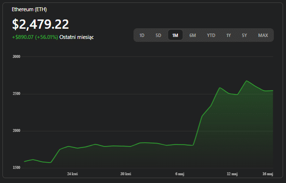 Drugą nogą portfela moim zdaniem powinno pozostać w większości przypadków stare dobre Ethereum. Wdrożona 7 maja aktualizacja Pectra podniosła limit stake’u do 2048 ETH, usprawniła UX kont typu smart-account i obniżyła opóźnienia sieci, co – choć nie gwarantuje natychmiastowego rajdu – istotnie zwiększa funkcjonalność protokołu. Cena oscyluje przy 2 480 USD, a kluczowe wsparcie wypada w okolicy 2 400 USD; dopiero tam widziałbym sens kolejnej transzy zakupowej przed potencjalnym wybiciem powyżej 2 650 USD.