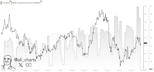 Tymczasem ekspert rynkowy Ali Martinez zidentyfikował gwałtowny wzrost aktywności wielorybów w sieci Bitcoin. Podkreślił, że ci duzi posiadacze kryptowaluty realizują transakcje na poziomie obserwowanym ostatnio od dwóch miesięcy, z 6311 przetworzonymi transakcjami przekraczającymi 1 milion dolarów.