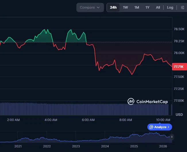 Kursu BTC się waha. Bitcoin nie przebił poziomu 80 000 USD i spadł poniżej 78 000 USD
