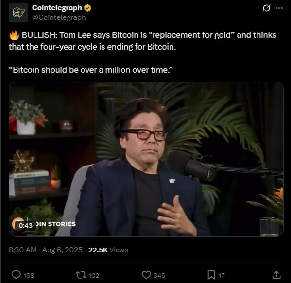 To będzie „last dance” Bitcoina? Tom Lee prognozuje jego cenę na koniec 2025 roku