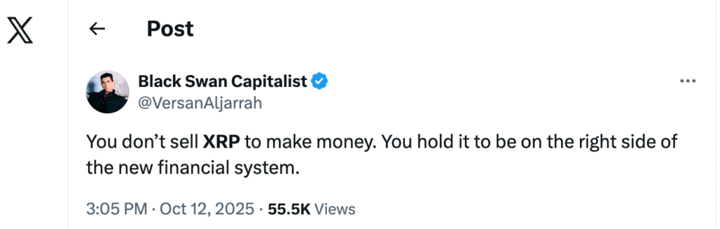 Zwolennik XRP i współzałożyciel Black Swan Capitalist Versan Aljarrah nalega, by posiadacze XRP nie patrzyli na niego jak na łatwy zyski, ale jak na bramę do przyszłości globalnych finansów.