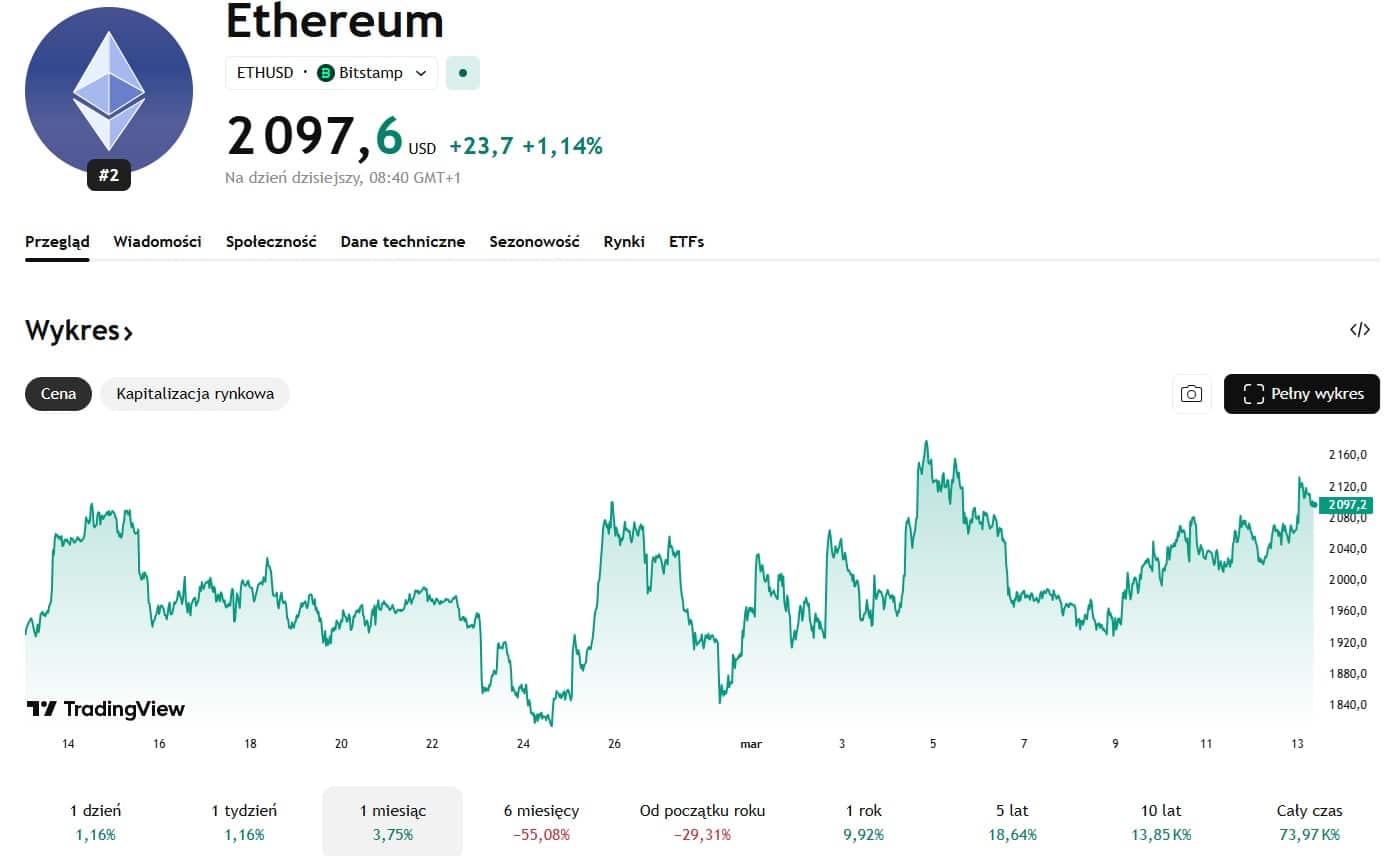 Ethereum stabilizuje się powyżej 2 tys. USD. Okazyjna cena?