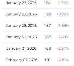 Co więcej, jeśli XRP nie odzyska szybko strefy 1,95$–2,00$, sprzedający mogą nadal ograniczać możliwości wzrostu. W tym kontekście powolny spadek do poziomu 1,88$ oznaczałby raczej konsolidację. Raczej nie załamanie, utrzymując XRP w znanym przedziale, który w ostatnich miesiącach pełnił rolę wsparcia.