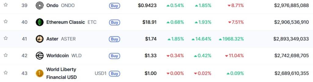 Dzięki szybkim przyrostom kapitału token zanotował ogromny wzrost kursu. W chwili pisania tekstu Aster kosztuje 1,74 USD, a ciągu ostatnich 24 godzin wzrósł o 14,64%. Z kolei przez cały ostatni tydzień altcoin zyskał na wartości aż 1968%.