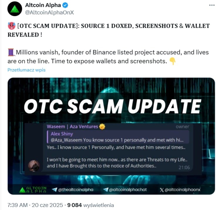 Opisany przez nas incydent rzuca nowe światło na nieodłączne ryzyko związane z nieuregulowanym obrotem kryptowalutami na rynku pozagiełdowym, szczególnie na nieformalnych platformach, takich jak Telegram. Chociaż kanały te oferują wygodę i dostęp do prywatnych transakcji, brakuje im zabezpieczeń i nadzoru regulacyjnego. Oszustwo to pokazuje, jak łatwo socjotechnika, szum medialny i obietnica ekskluzywności mogą zostać wykorzystane przeciwko nawet doświadczonym inwestorom.
