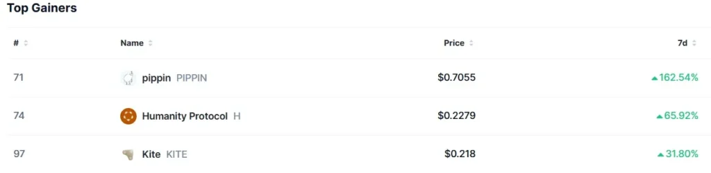 Wiceliderem pod względem wzrostów okazał się Humanity Protocol (H), który wzrósł o 65,92%. W tym przypadku katalizatorem wzrostów była m.in. informacja o integracji z Fireblocks, czyli czołową platforma powiernictwa aktywów cyfrowych. Ponadto wolumen obrotu tokenem wzrósł o 90%. Po gwałtownym wzroście doszło również do nagłe likwidacji krótkich pozycji, co przyspieszył wzrost kursu.