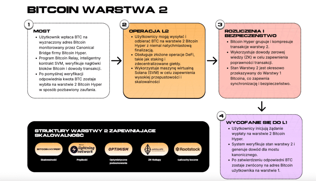 Projekt celuje w szybkie i tanie transakcje Bitcoin. Centralnym elementem tworzonego ekosystemu jest most kanoniczny (Canonical Bridge), system, który blokuje $BTC w łańcuchu bazowym i tworzy wersję opakowaną w sieci Bitcoin Hyper. Opakowany $BTC zachowuje tę samą wartość, ale może być przenoszony szybciej i wykorzystywany w aplikacjach z prędkością Solany.
