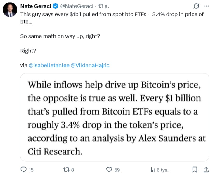 Komentując tę sytuację ceniony analityk Nate Geraci, prezes The ETF Store, stwierdził, że tak szybkie odwrócenie trendu, w którym 238 milionów dolarów wpływa do funduszy po rekordowym odpływie, jest klasycznym sygnałem „kupowania dołka”. Dodał on, że tak właśnie zachowują się nowe klasy aktywów, a zmienność kreuje okazje, podkreślając jednocześnie, że pozytywny bilans IBIT i GBTC łącznie stanowi potężny komunikat dla rynku. Jego zdaniem, kapitał instytucjonalny nie ucieka, lecz dokonuje rebalansowania portfeli, co z technicznego punktu widzenia jest zjawiskiem zdrowym i oczekiwanym.