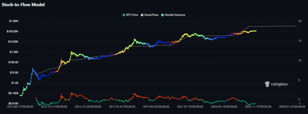 PlanB pozostaje wierny swojemu dziecku, czyli modelowi Stock-to-Flow, widząc w nim zgrabny „magnes” wynikający z coraz to większej rzadkości Bitcoina po cyklicznych halvingach. W jego ujęciu średnia cena w okresie poshalvingowym może oscylować w szerokim paśmie 250 tys. – 1 mln dolarów, a punktowy odczyt modelu na dziś sytuuje się w okolicy kilkuset tysięcy. Trzeba jednak zaznaczyć, że S2F to model jednoczynnikowy (strona podaży), który w przeszłości bywał przeszacowany i regularnie podlega rewizjom – sensownie sprawdza się jako rama narracyjna cykli, a nie jako precyzyjna prognoza.