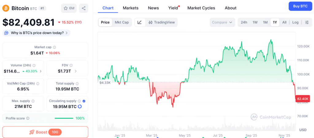 Rynek kryptowalut znowu przypomina rollercoaster. Kurs Bitcoina spadł poniżej poziomu obserwowanego od kwietnia, a dane CoinMarketCap pokazują spadek ceny w okolice 82 tys. USD. Jednocześnie analitycy rynkowi wskazują, że obecna faza cyklu rysuje się jako etap o najniższym sentymencie od wielu miesięcy. W tej mieszance zmienności, paniki i rotacji ryzyka uwagę przyciąga segment infrastruktury Web3, w którym token portfela kryptowalut Best Wallet wchodzi w ostatni tydzień swojej przedsprzedaży.