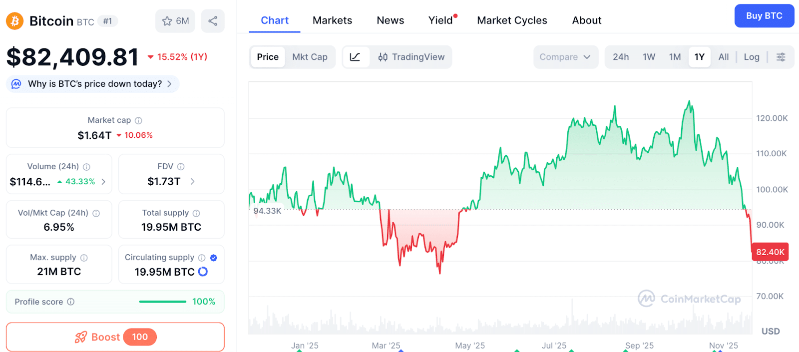 Źródło: CoinMarketCap z 21 listopada 2025