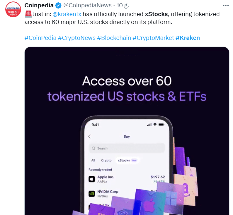 Kraken odpala xStocks. Apple, Microsoft i S&P 500 dostępne 24/5