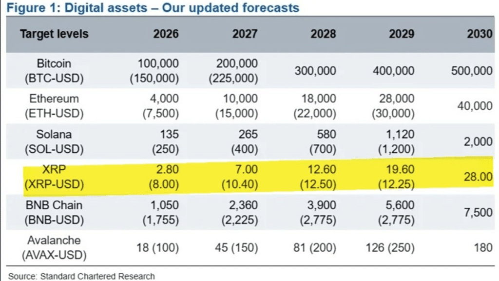 Prognoza Standard Chartered dla XRP. Cena zatrzyma się na poziomie 2,80 USD?