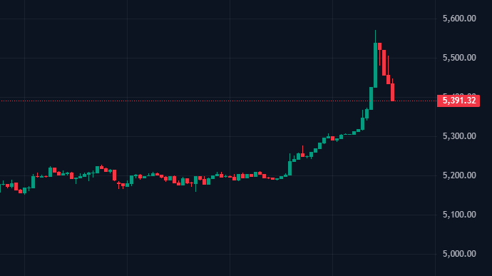 „Out ze złota – 5260 – na weekend. Zostawiam ETH i BTC w Longu. Złoto do ponowienia w pon”.