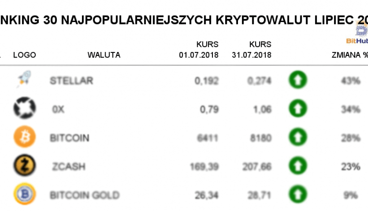 Lipiec przyniósł ze sobą niewielkie ożywienie na notowaniach niektórych walut wirtualnych. Szczególnie zauważalne wzrosty dostrzec można było na Bitcoinie, którego wartość na przestrzeni całego miesiąca wzrosła o niemal 21%. Fakt ten sprawił, że i kapitalizacja całego rynku na moment ponownie przekroczyła 300 mld USD.