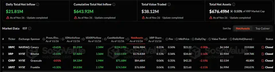 W samym tylko jednym dniu, 26 listopada obrót na ETF-ach na XRP przekroczył 38 milionów dolarów. Wcześniej wolumeny były jeszcze wyższe, szczególnie w dniach największych napływów kapitału. To pokazuje, że handel jest realny. Fundusze robią to, co zawsze w takich sytuacjach. Zasysają podaż z rynku spotowego i zamykają ją w regulowanych strukturach depozytowych.