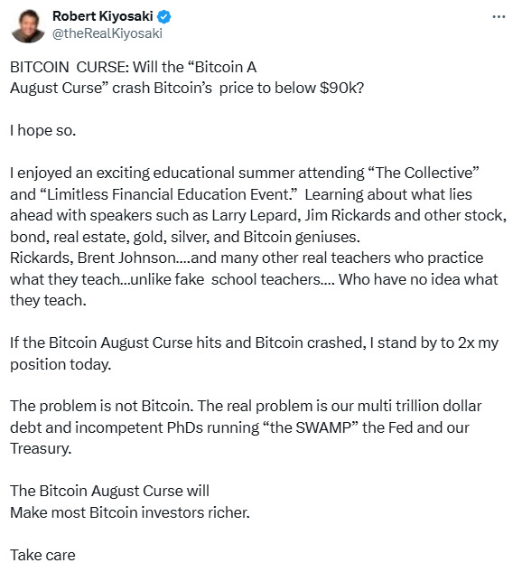 Robert Kiyosaki: 'Bitcoin zszokuje znowu. Krach jeszcze w sierpniu’. Oto tajny plan guru