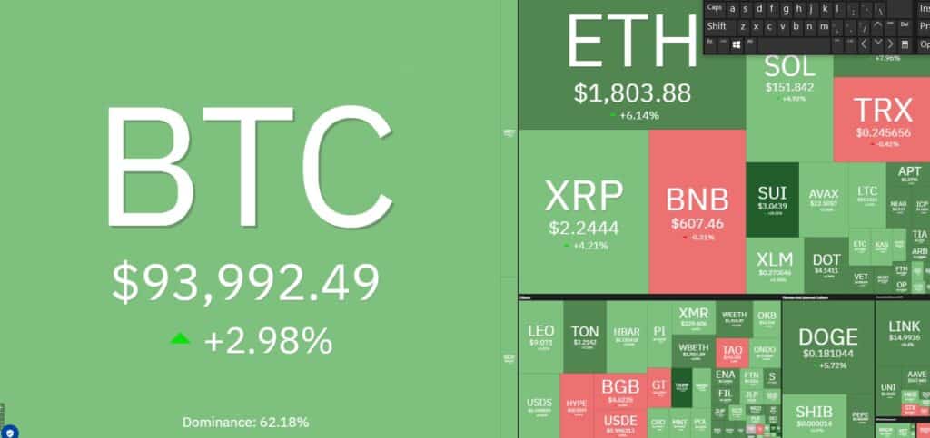 Prawie wszystkie kryptowaluty na zielono? Rosnące napływy do funduszy ETF opartych na Bitcoinie (BTC) ożywiły entuzjazm inwestorów, windując jego cenę do niemal 95 000 USD. Według niektórych analityków to dopiero początek – prognozy sięgają nawet 200 000 USD do końca 2025 roku. Sprawdźmy, jak wygląda sytuacja nie tylko dla BTC, ale też dla kluczowych altcoinów!