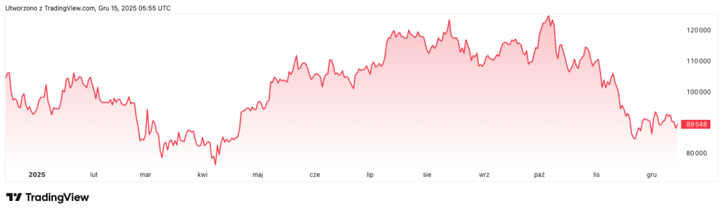 Do tego dochodzą oczekiwania dalszych obniżek stóp procentowych. Tańszy pieniądz to nie tylko lepsze warunki dla akcji czy nieruchomości, ale też klasyczny impuls dla Bitcoina. Rynek pamięta, jak szybko narracja potrafiła się zmieniać, gdy koszt kapitału przestawał być barierą.