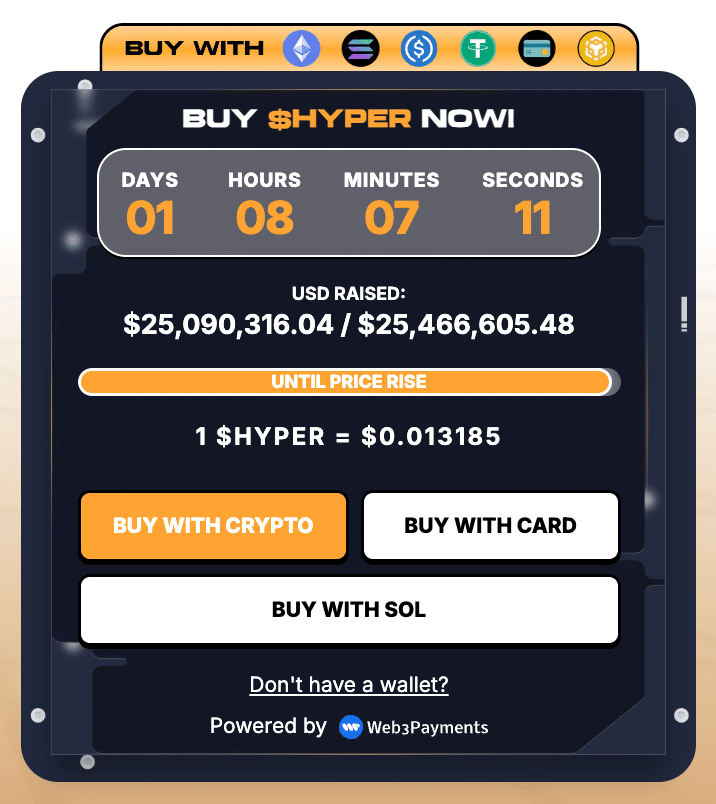 Projekt Bitcoin Hyper zebrał w przedsprzedaży już ponad 25 milionów dolarów.