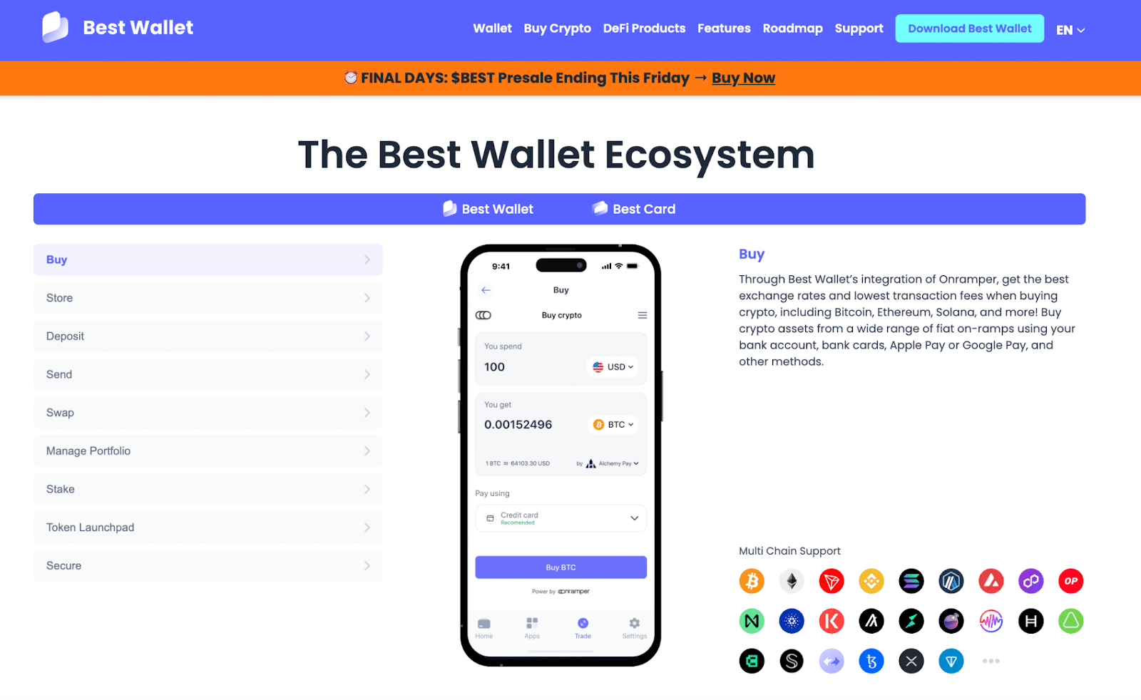 Na tym tle wyróżnia się Best Wallet, niepowierniczy i wielołańcuchowy portfel kryptowalut.