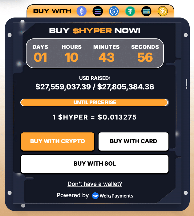 Przedsprzedaż tokenów $HYPER przekroczyła 27 milionów USD, przy cenie jednostkowej 0,013275 USD. To nie tylko liczby, ale wyraźny sygnał, że rynek widzi w tym projekcie realny potencjał.