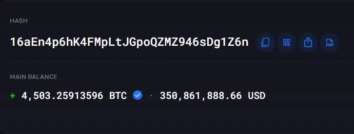 Tak właśnie wygląda sytuacja z adresem 16aEn4p6hK4FMpLtJGpoQZMZ946sDg1Z6n, który 16 kwietnia 2026 roku Przemysław Kral, prezes zondacrypto, wskazał publicznie jako dowód na to, że giełda dysponuje znaczącymi rezerwami bitcoinów jako bazą zabezpieczającą pod wypłaty klientów. Adres faktycznie istnieje. Na blockchainie widnieje na nim około 4503 bitcoinów, co w przybliżeniu odpowiada wartości ponad 300 mln USD po aktualnym kursie. Problem w tym, że Kral twierdzi, że klucze do portfela posiada zaginiony już poprzedni, „zniknięty” w tajemniczych okolicznościach prezes giełdy Sylwester Suszek i nie wiadomo nawet czy ten portfel faktycznie kiedykolwiek należał do zondacrypto (wówczas mówilibyśmy o właścicielstwie BitBay, zanim nastąpił rebrand w aktualną firmę).