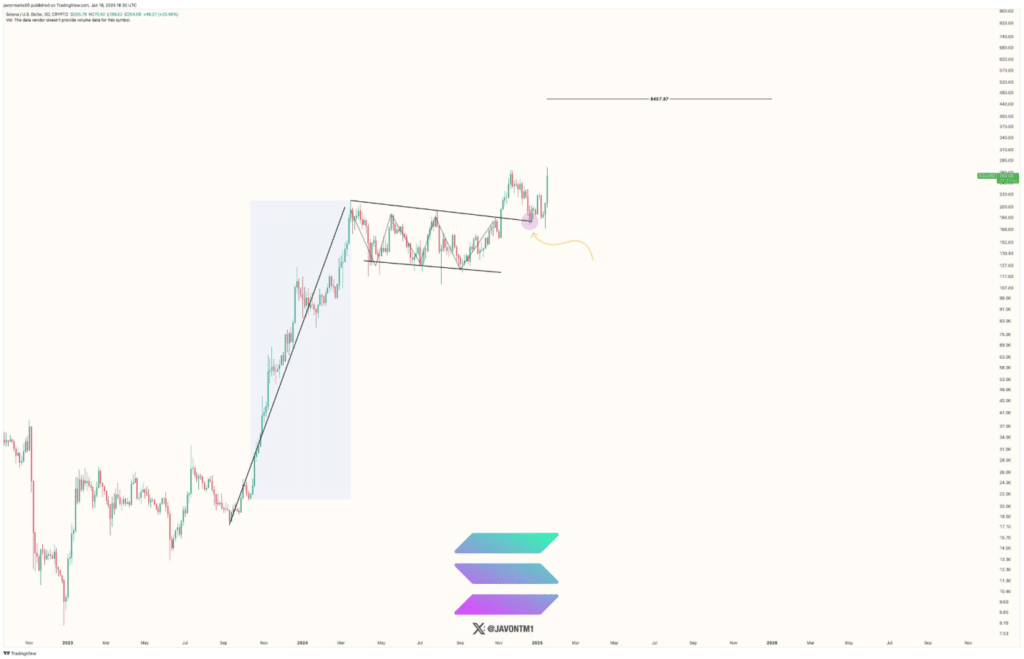 Uruchomienie monety memowej Trumpa na blockchainie Solana spowodowało duży skok zarówno zainteresowania, jak i ceny Solany (SOL). Zainteresowanie tokenem wzrosło do nowego poziomu, windując cenę Solany do ponad 246$, co oznacza silny wzrost o 32,8% w ciągu zaledwie ostatniego tygodnia. Ta wiadomość sprawiła, że fani kryptowalut i eksperci rozmawiają o tym, co może się stać dalej z pozycją rynkową Solany.