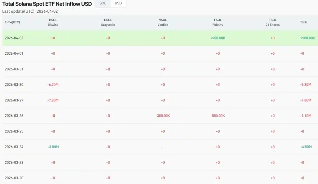 Powodów do optymizmu nie dają również analizy przepływu w ramach funduszy spootowych powiązanych z tokenem SOL. Zazwyczaj dodatni przepływ kapitału sugeruje, że inwestorzy instytucjonalni i wieloryby inwestują w dany token. Niestety w przypadku SOL ETF dane są pesymistyczne. Przez cały marzec rynek obserwował odpływ kapitału.