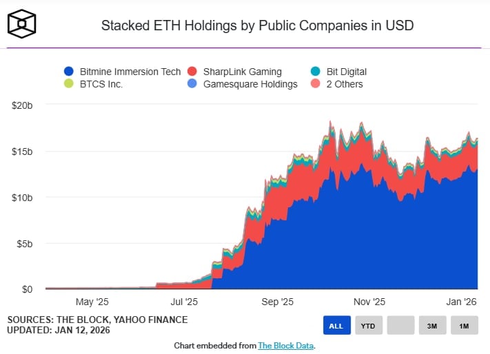 Standard Chartered przyznaje, że napływy do ETF-ów kryptowalutowych i struktur skarbcowych spółek wyhamowały. Nie zniknęły jednak całkowicie, a relatywnie lepiej wyglądają właśnie po stronie Ethereum. Symbolicznym przykładem jest BitMine Immersion, największa giełdowa spółka skarbowa skoncentrowana na ETH, która kontroluje już około 3,4% podaży i konsekwentnie zmierza do poziomu 5%.