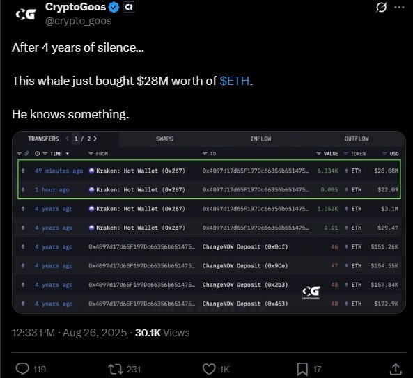 Uśpione wieloryby ETH wracają i wywołują zamieszanie na rynku