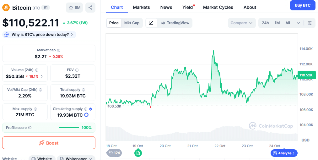 Na platformie Polymarket prawdopodobieństwo obniżki stóp procentowych o 25 punktów bazowych w październiku wzrosło do 97%. Bitcoin szybko zareagował, wracając w pewnym momencie powyżej 111 tysięcy dolarów.