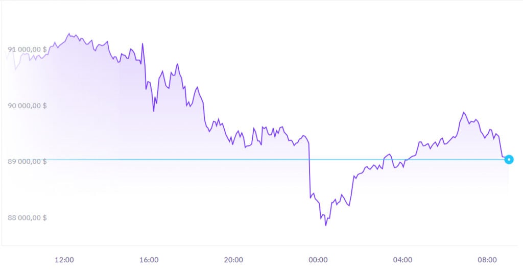 Wczesnym rankiem kurs Bitcoin oscylował w granicach 89 600 USD, co oznaczało odrobienie części strat z poprzedniego dnia, kiedy to rynek zdominowała ucieczka od ryzykownych aktywów.