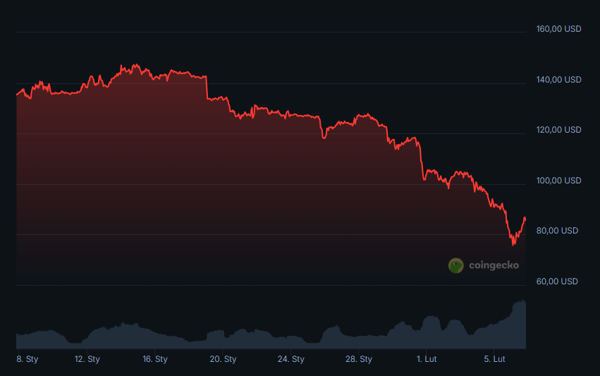 Praktycznie: jeśli SOL ma domknąć luty „zdrowo”, musi odzyskać i utrzymać 93–95 USD, a najlepiej wejść powyżej 100 USD. Bez tego bazowym układem pozostaje rynek podatny na ponowne testy 78–72.