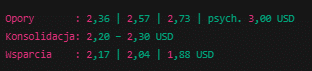- Kluczowy poziom obrony to 2,17 USD; utrata go otworzy drogę do psychologicznego 2,00 USD.