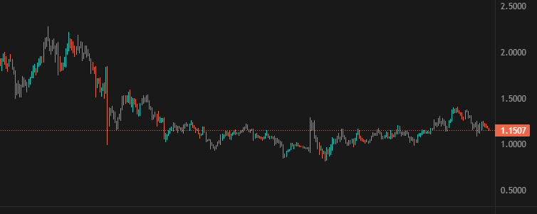 Stan na dziś: kurs krąży w okolicy ~1,16 USD (patrz wykres powyżej). Ostatnie sesje przyniosły zawężenie zmienności pomiędzy lokalnym wsparciem i oporem.