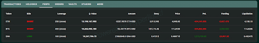 Tymczasem pozycja wydaje się ryzykowna. Ten wieloryb może zostać zlikwidowany, jeśli Bitcoin i Ethereum utrzymają obecną trajektorię wzrostową prowadzącą do odbicia cen. Cena likwidacji BTC tego wieloryba wynosi około 114 290 USD. Natomiast ozycja ETH wynosi 4138 USD. Z drugiej strony, ENA musi spaść do 0,45 USD przed likwidacją.