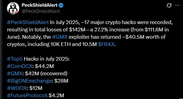 Podobne straty w lipcu co CoinCSX poniosła również platforma GMX. Przez luki w zabezpieczeniach giełda straciła 42 mln dolarów, z czego aż 40,5 mln dolarów w Ethereum. W tym przypadku hakerzy użyli oprogramowania typu exploit. To program, który wyszukuje luk w zabezpieczeniach giełd, aby umożliwić nieautoryzowany dostęp. W ostatnim czasie to bardzo popularna metoda wśród oszustów, którzy atakują duże platformy do handlu kryptowalutami. Dokładnie z tego samego oprogramowania korzystali oszuści, którzy dokonali wspomnianego ataku na WazirX.