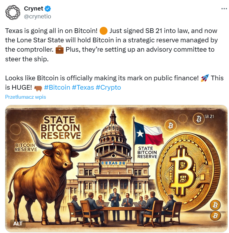 Teksas rusza po Bitcoin. To pierwsza taka rezerwa w historii USA!