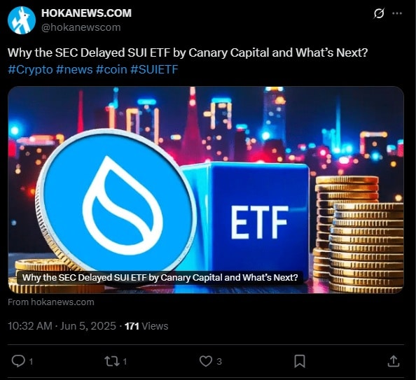 Ci, którzy liczyli, że w najbliższym czasie dojdzie do odwrócenia trendu, powinni zachować ostrożność. Wszystko przed ostatnią decyzję SEC w sprawie wniosku Canary Capital w sprawie wprowadzenia na rynku fundusz spotowego SUI ETF. Wiele osób odbiera tę decyzję negatywnie, ponieważ może oznaczać, że SEC ma wątpliwości co do kwestii prawnych projektu.
