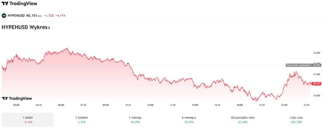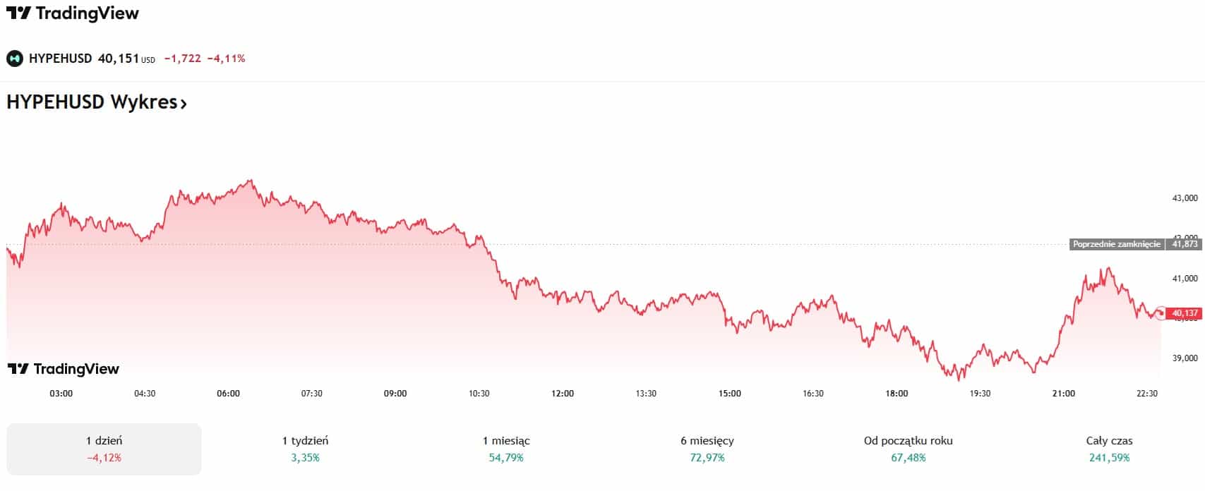 Na rynku kryptowalut takim wyjątkiem od tygodni jest Hyperliquid. Token w chwili pisania tekstu kosztuje 40,15 USD. Co prawda w ciągu ostatniej doby HYPE spadł o 4,12%. Jednak na przestrzeni minionego tygodnia kryptowaluta wzrosła o 3,35%. Natomiast w trakcie ostatniego miesiąca altcoin zyskał na wartości 54,79%. Od początku roku wartość HYPE skoczyła aż o 67,48%. Zdecydowana większość projektów może tylko pomarzyć o takich wynikach.