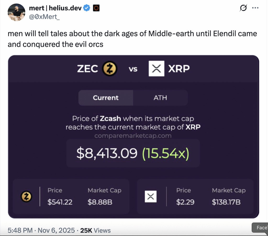 Porównanie szybko rozprzestrzeniło się na platformie X po pojawieniu się programisty Mert z Helius. Ekspert udostępnił ją z żartobliwym podpisem na temat „mrocznych wieków Śródziemia”. Temat monety o prywatności stał się również tematem rozmów przez całą noc.
