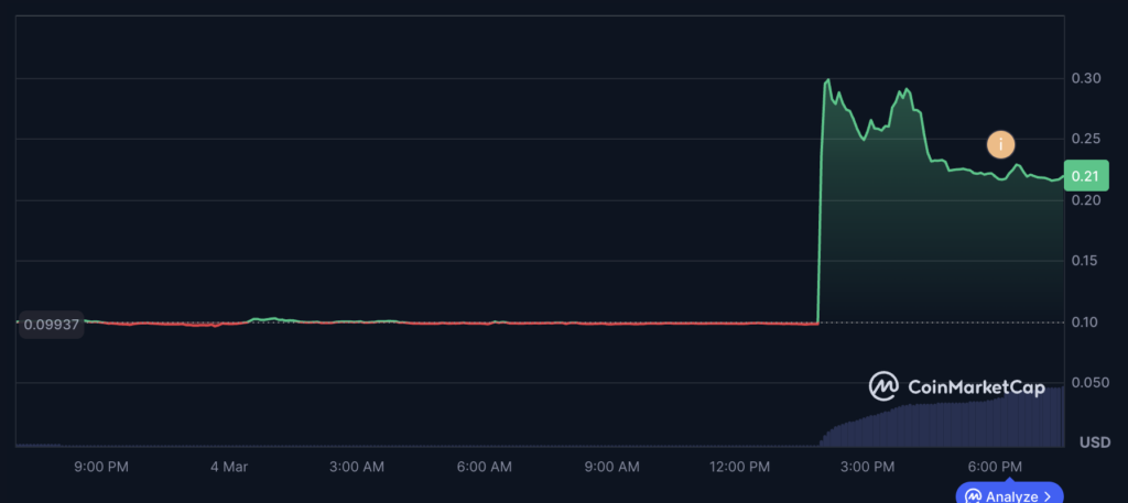 W przypadku EDGE reakcja rynku była bardzo szybka. Według danych z CoinMarketCap cena tokena wzrosła o około 180% w ciągu 24 godzin. Kurs skoczył z poziomu około 0,10 USD do blisko 0,29 USD. W tym samym czasie wolumen handlu wzrósł wielokrotnie.